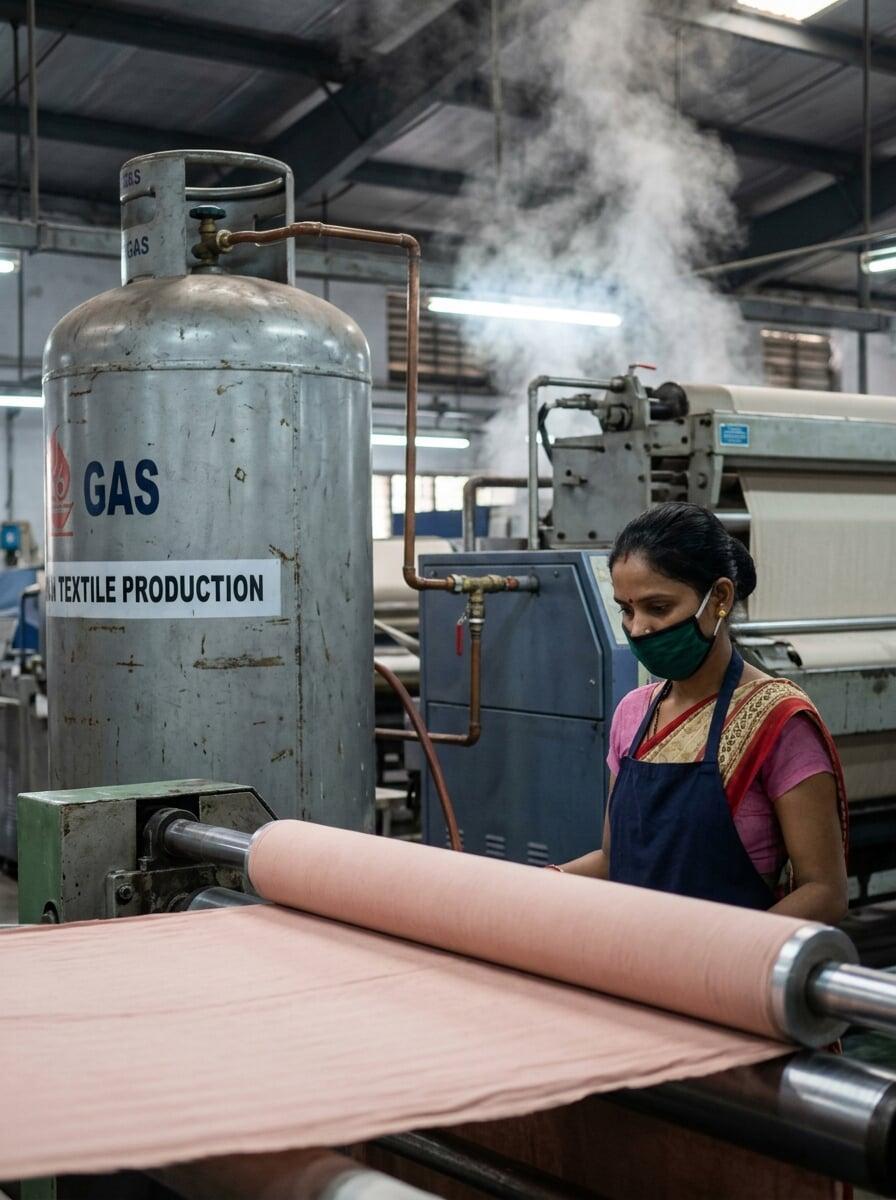 The journey of a garment doesn’t begin in a store - it begins in factories where fabric is processed, dyed, and finished. These stages require heat, and in many cases, energy sources like LPG are used to power these processes.